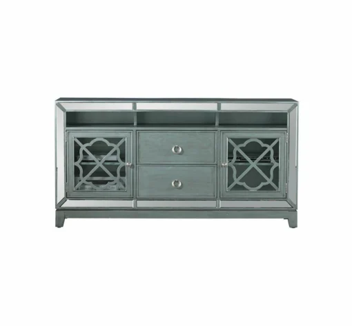 With the television being the focal point of the modern living room, it’s important that your console is just as attention grabbing. This console from the Anastasia Collection has an inlaid mirror frame with grey trim and will definitely make your guests sit up and take notice of your decorating skills. Update the entire living room and add the rest of the Anastasia Collection to your home today.
