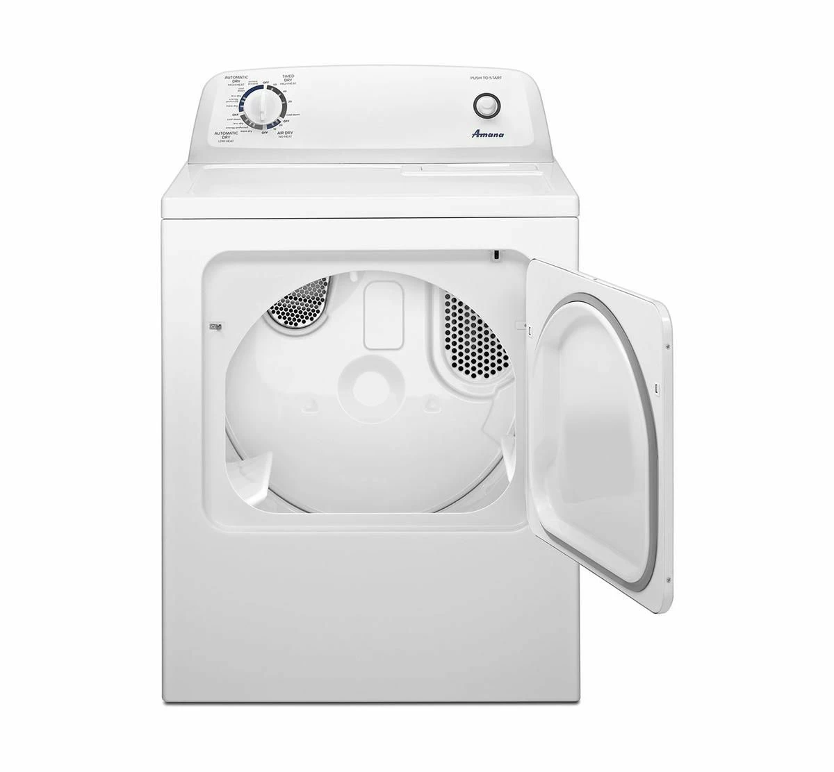 This 6.5 Cu. Ft. Amana electric dryer can help prevent damage to clothes with auto dryness control. You get 11 dry cycles, plus the wrinkle prevent option which helps keeps the creases and wrinkles out.