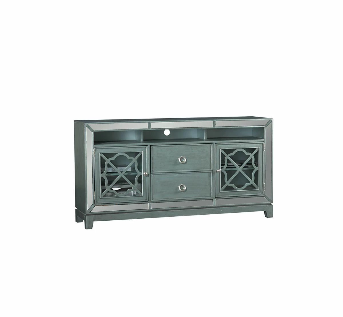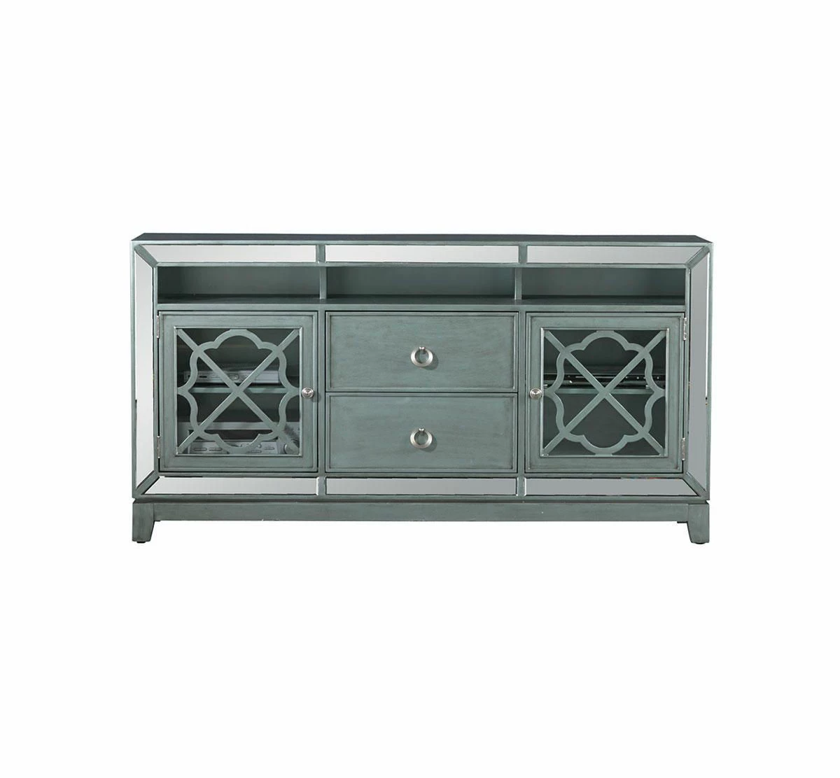 With the television being the focal point of the modern living room, it’s important that your console is just as attention grabbing. This console from the Anastasia Collection has an inlaid mirror frame with grey trim and will definitely make your guests sit up and take notice of your decorating skills. Update the entire living room and add the rest of the Anastasia Collection to your home today.