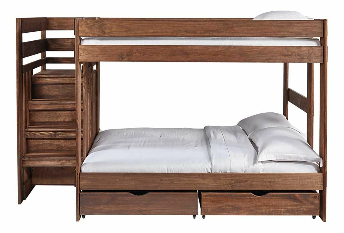 Put the kids to sleep in this rustic and stylish full stairbed from the Baylee Collection. With a gorgeous dark wooden finish and an easy-access top bunk thanks to the stairs, this piece will fit with any existing décor. Add this classic, high-quality bed to your child’s room and transform their room into a beautiful retreat. Trundle or underbed storage sold separately. Not mattress ready.