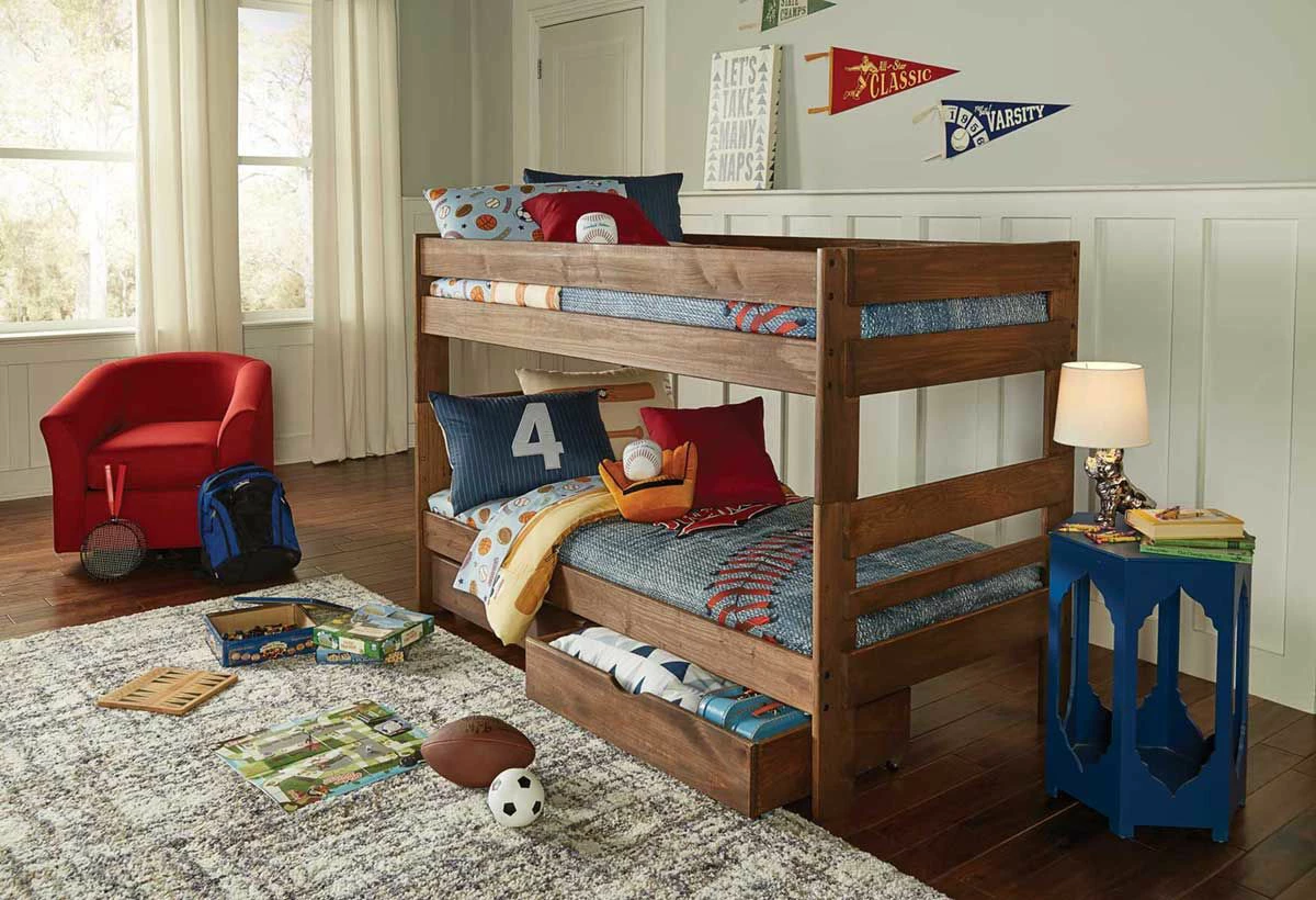 Put the kids to sleep in this rustic and stylish twin bunk bed from the Baylee Collection. With a gorgeous dark wooden finish and optional underbed storage, this piece will fit with any existing décor and help you keep their room tidy. Add this classic, high-quality bed to your child’s room and transform their room into a beautiful retreat. Underbed storage option sold separately.