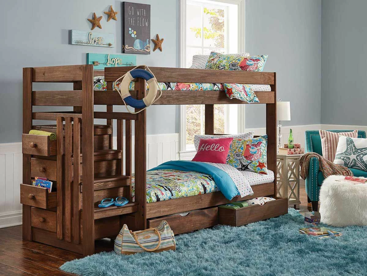Put the kids to sleep in this rustic and stylish twin stairbed from the Baylee Collection. With a gorgeous dark wooden finish and an easy-access top bunk thanks to the stairs, this piece will fit with any existing décor. Add this classic, high-quality bed to your child’s room and transform their room into a beautiful retreat. Underbed storage sold separately.