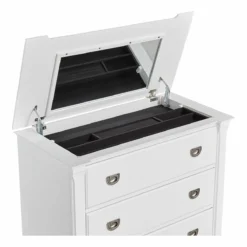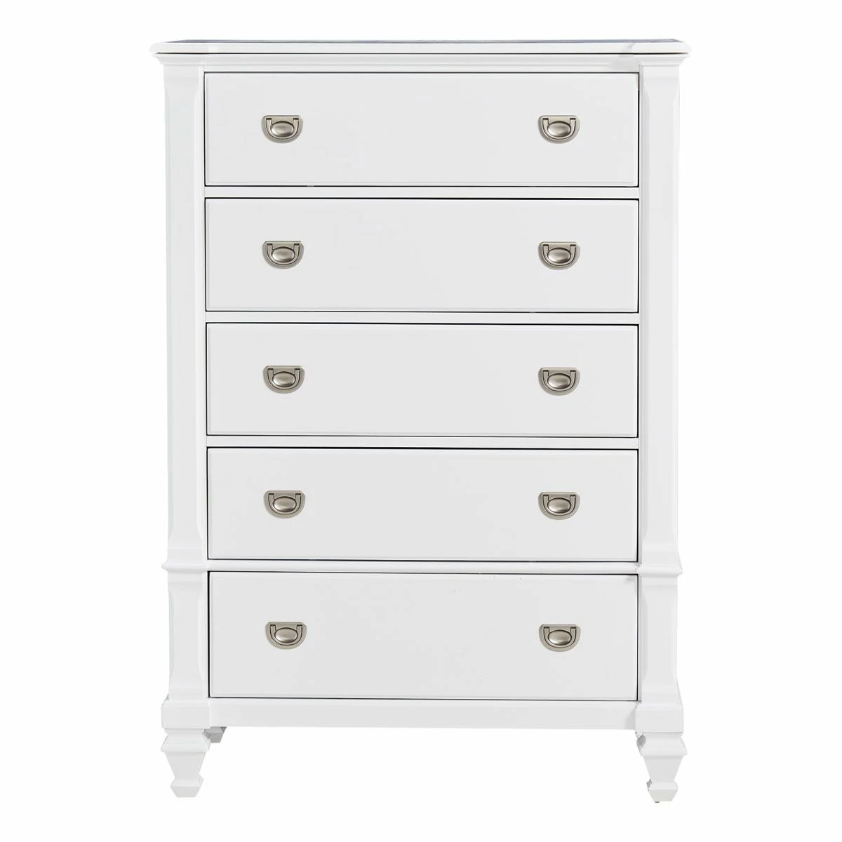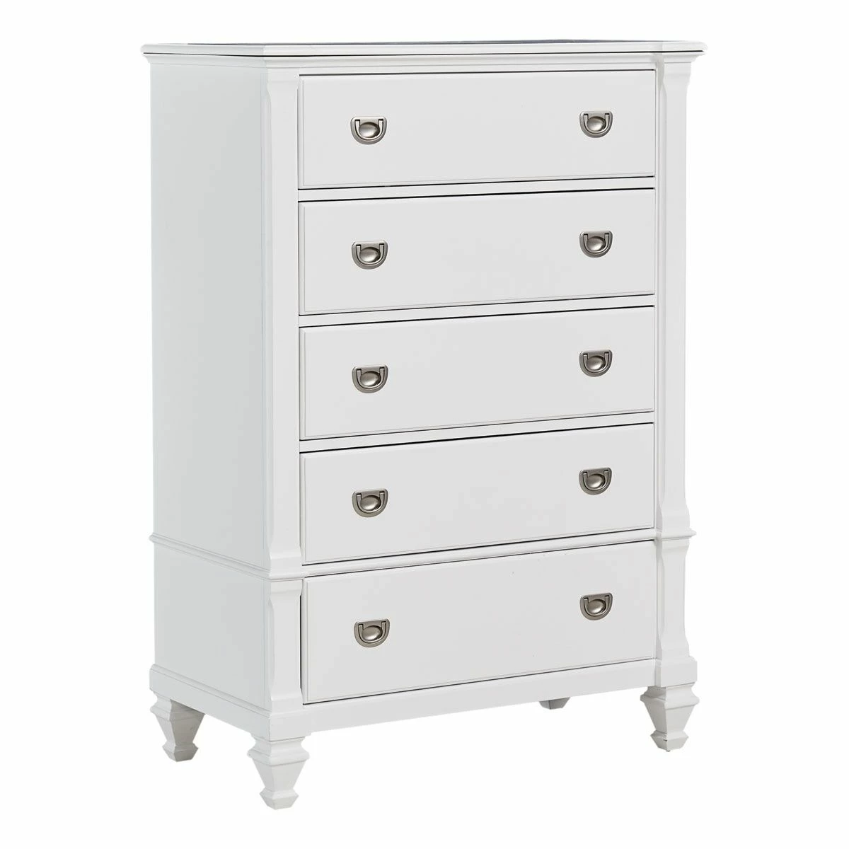 Searching for a bright update to your master bedroom, look no further than the Biscayne bedroom group. With the pure, bright white finish that includes a shutter detailed headboard and dresser you can transition your bedroom into a coastal escape. This bedroom suit features molding detail edges on every piece which will electrify and elegantly elevate your bedroom. The brushed nickel, recessed hardware pulls make a striking statement.