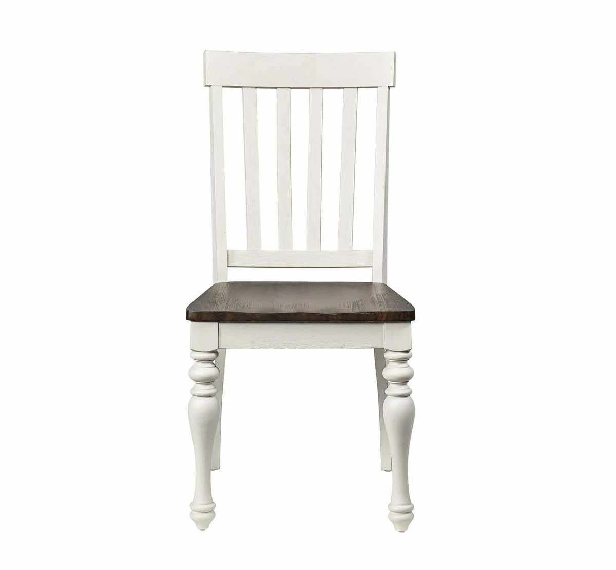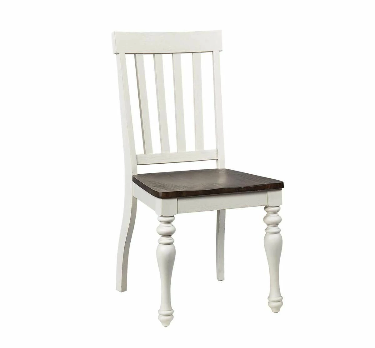 Elevate the everyday meal with these farmhouse-style chairs from the Briarwood Collection. Sporting turned legs and a handsome crème finish, and constructed of acacia veneers and hardwood solids, these chairs will set a cheerful mood at your table. Add the rest of the Briarwood Collection, and your home will radiate with warmth.