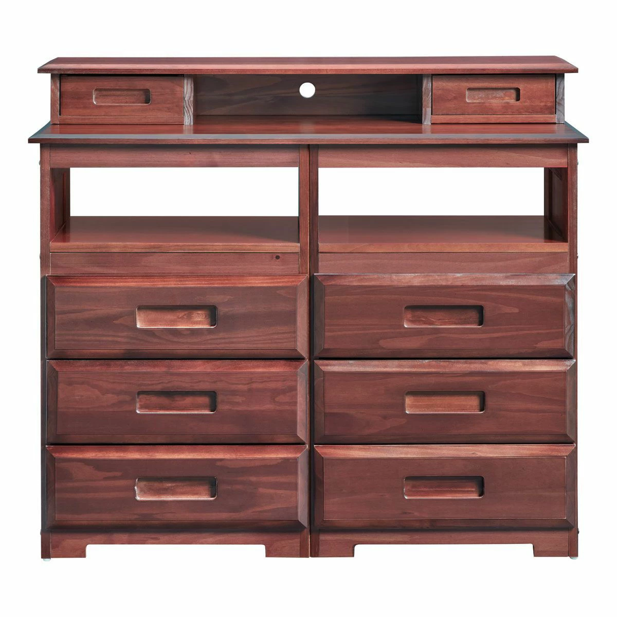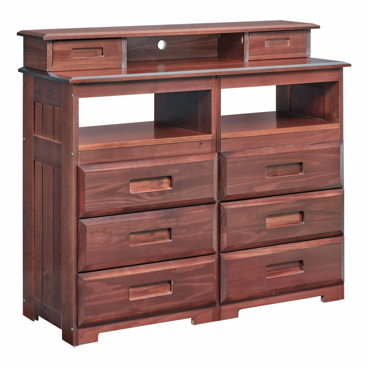 This solid wood merlot finish of this collection features many different options. This collection can be dressed up or add a more playful setting for your younger ones. Versatility is the keystone of the many pieces you can add to this collection. This group includes 6 Drawer Entertainment Dresser and Hutch.