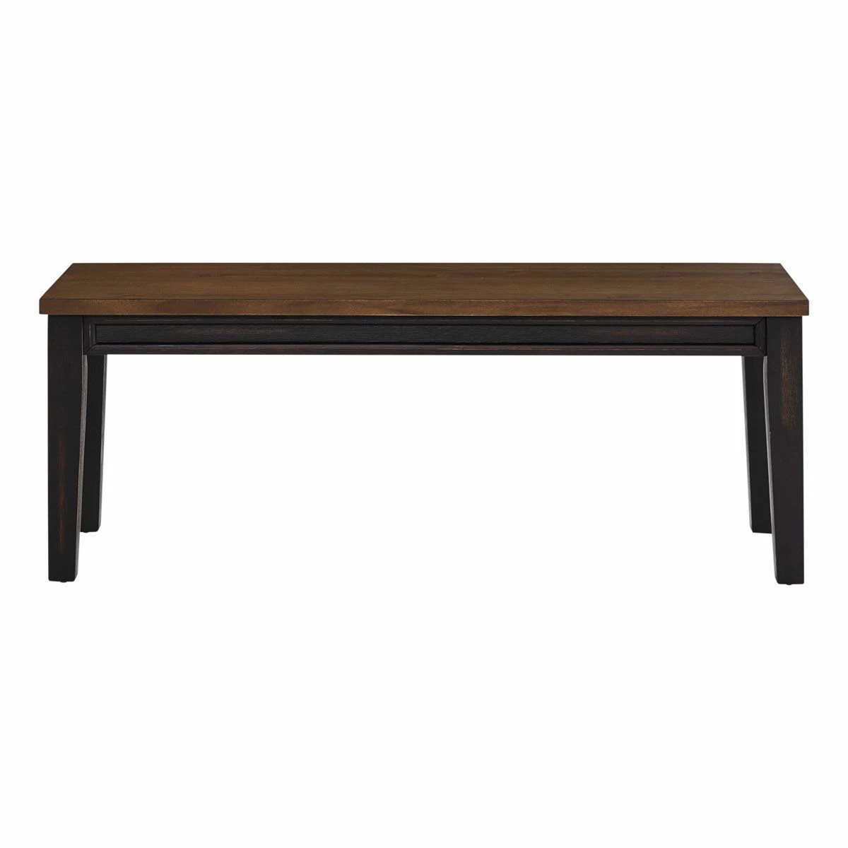Update your dining space with the Dempsey collection. This farmhouse styled set give classic cottage styling with a modern take by combining clean lines with a two-toned ebony and driftwood finish. This tapered-leg benches can be mixed or matched to fit your own personal style.