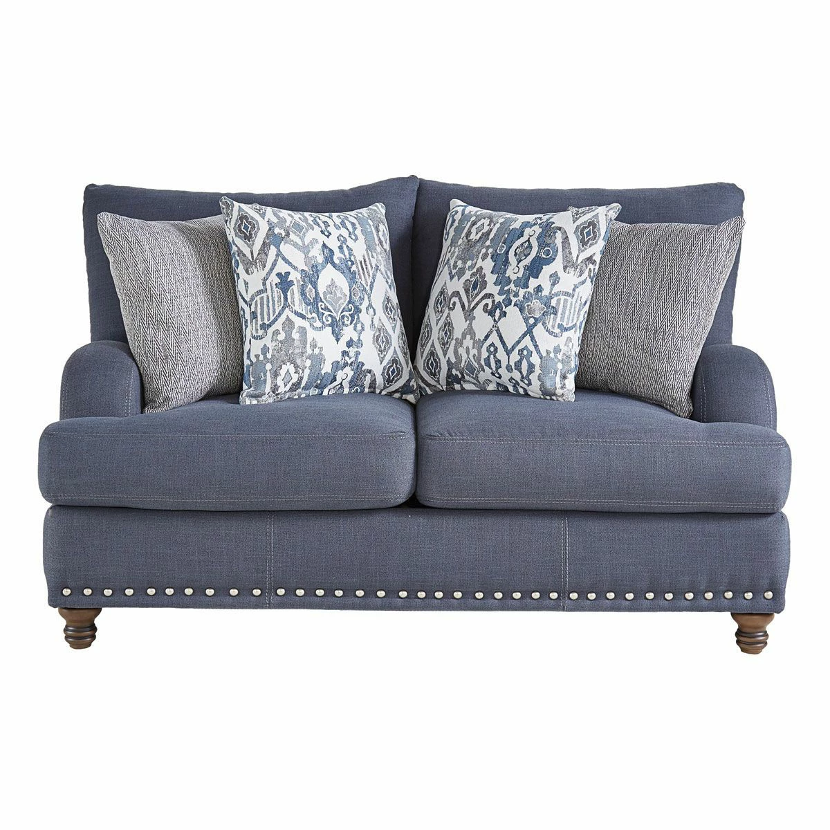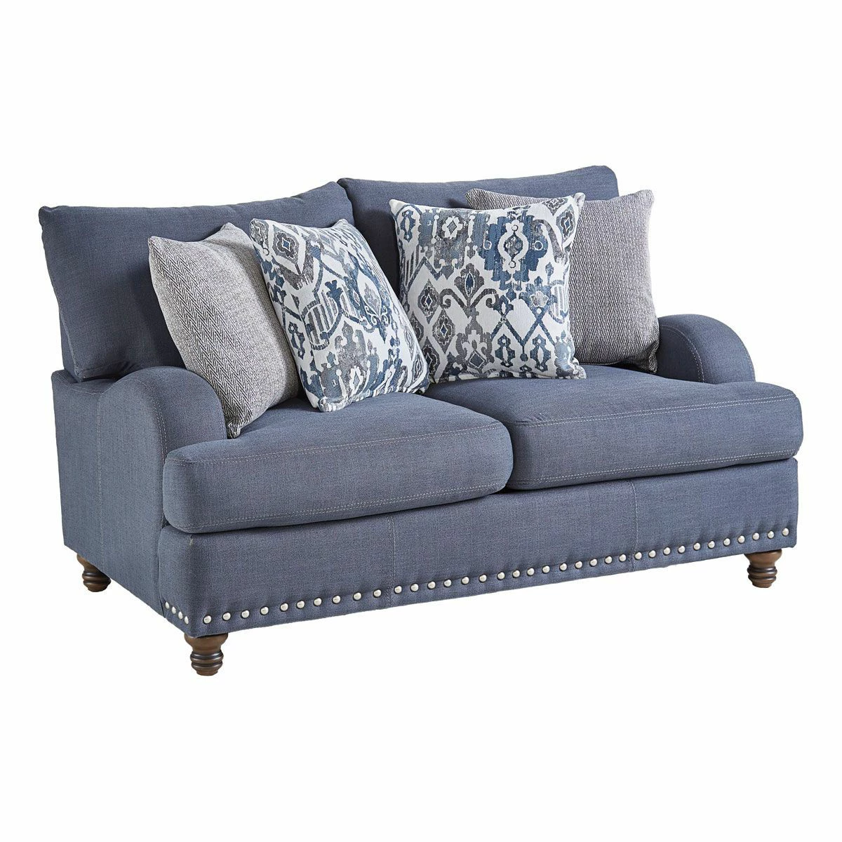 Looking for a splash of color for your living room, then meet the Ellsworth collection. An exclusive design for W.S Badcock Home Furniture & More and a part of our Stanhope private label collection. Each piece features our exclusive euro-comfort, gel infused seat cushion for maximum relax-ability. Featuring a chaise to accommodate any room. The brushed silver nail-head treatment is the perfect complement to the indigo upholstery. Includes 2 accent pillows
