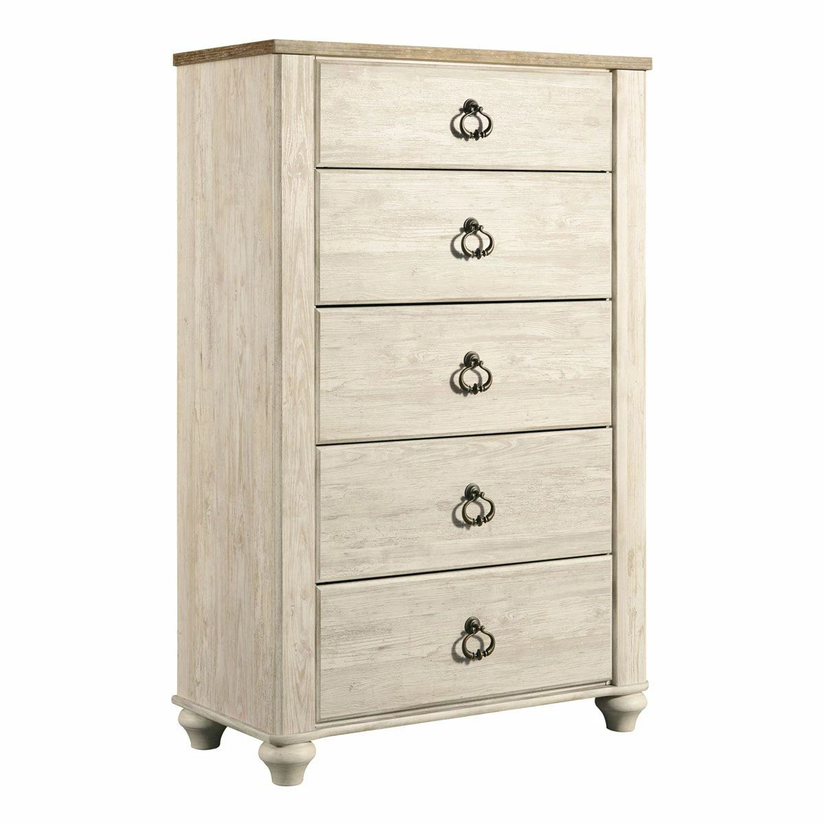 From the beach house, to the comfy cottage, even over to the city loft, the ‘Essex’ master bedroom collection fits your style. Set-off by the expertly-applied two tone finish, the collection features driftwood brown tops and whitewashed cases. Laminate with replicated wood grain over engineered wood construction. The round antique brass finished hardware are a perfect companion to this suite.