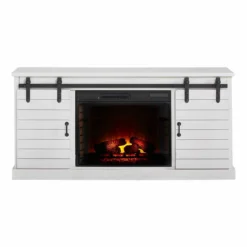 Give your living room the wildly popular look that’s reminiscent of simpler times. The barn-style doors and rustic metal accents of the Farmhouse Entertainment Center with Fireplace offer an undeniable charm that’s a staple in many homes across America. The doors open to reveal plenty of storage space for your entertainment accessories, and the side shelves are an ideal place to showcase your decorations.