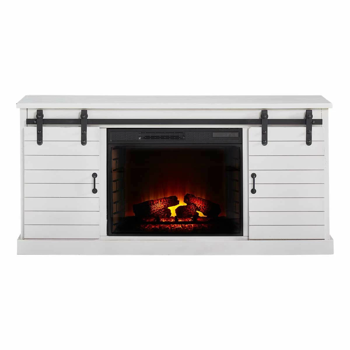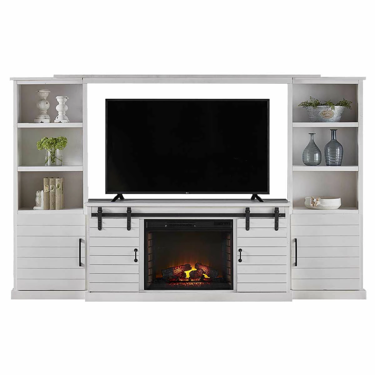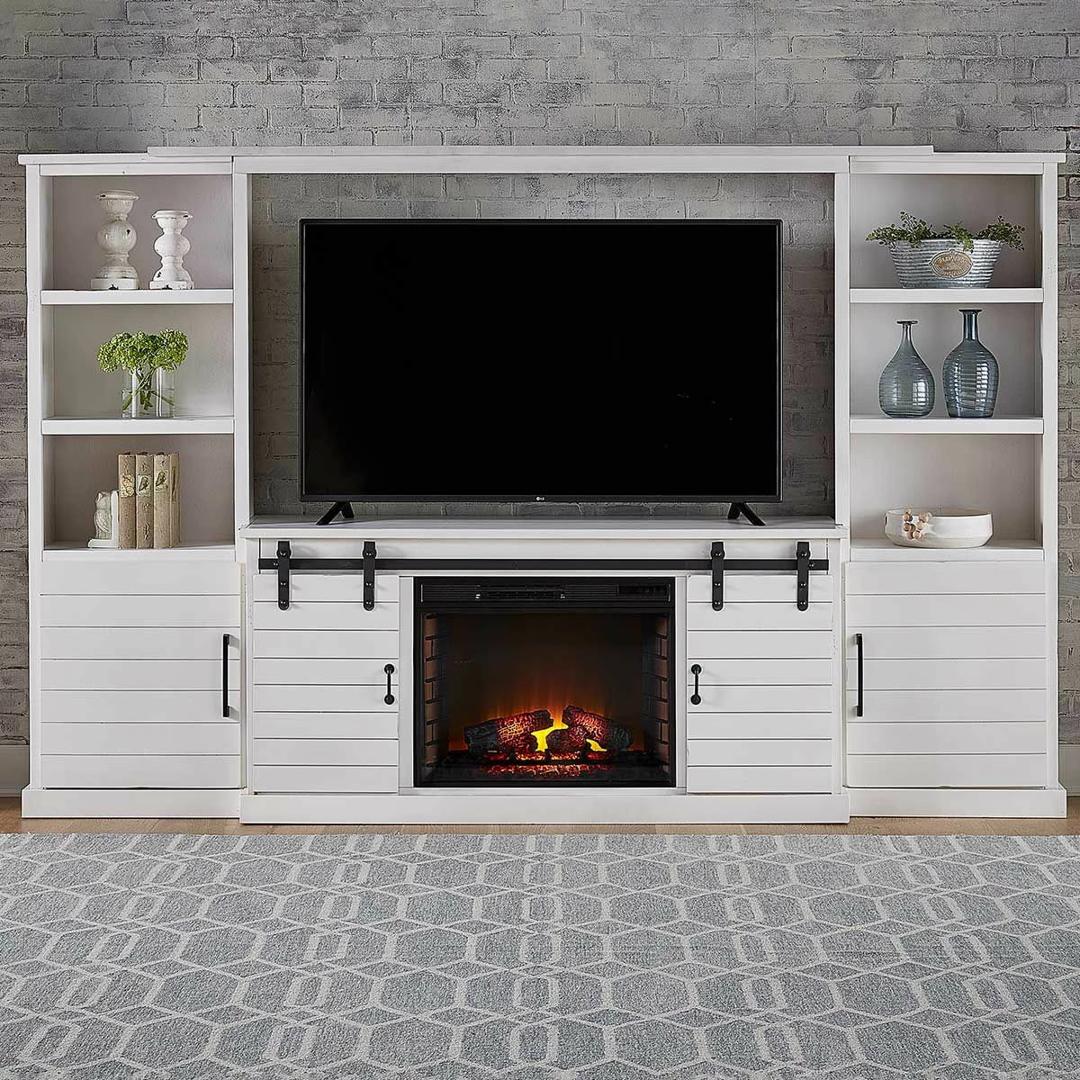 FARMHOUSE WHITE FIREPLACE 4 PIECE ENTERTAINMENT CENTER