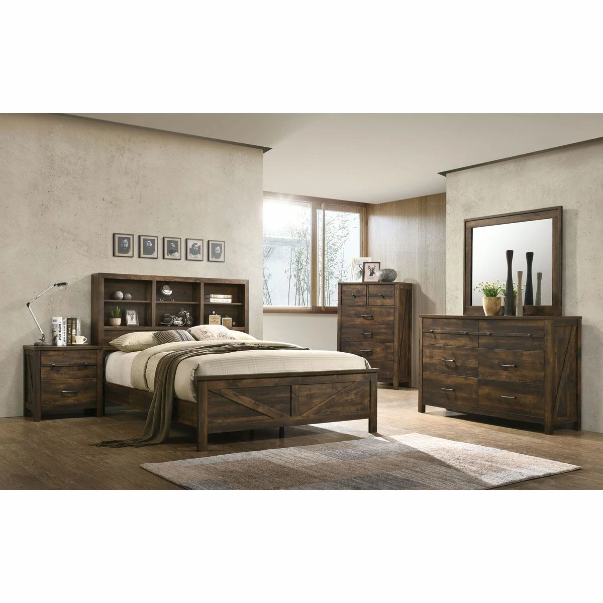 The rich rustic dark brown youth bedroom collection replicated the farmhouse collection, will create enjoyable bedroom setting that anyone will enjoy spending time with. The headboard is incorporated with bookcase design with compartment, that can be used for storage to keep the room neat and tidy. The space saver bed also come with optional trundle drawer for convenient under the bed storage. The bed come with parallel look of case pieces designed with stylish to accentuate to entire set, which made from engineered wood. The cases feature with spacious drawers’ size with metal guide to support the drawer stability. This group includes bed, dresser and mirror, underbed storage trundle sold separately.