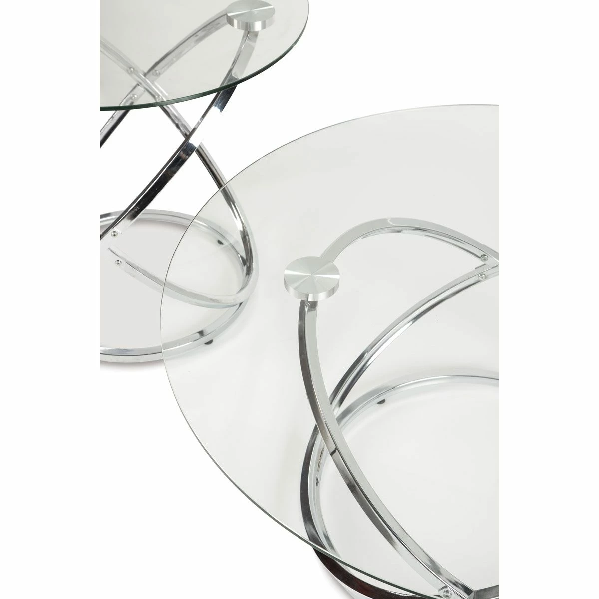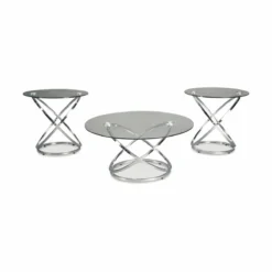 If you’ve been holding out for an ultra-contemporary look that’s delightfully unique, the Galaxie round coffee table set is clearly worth waiting for. Chrome-tone metal rings are topped with clear glass with polished edges for a masterfully modern look with minimal fuss.