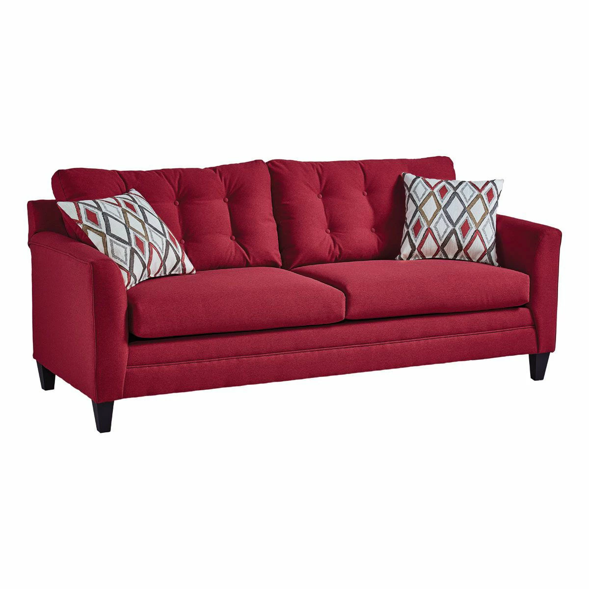 Clean, sophisticated lines combine with padded inside arms, large multicolored pillows, roomy cushions and soft, soothing polyester fabric for the ultimate in stylish, casual comfort. Transform your living room into a casual yet sophisticated retreat with this vibrantly colored sofa and other pieces from the Haley Red Collection.