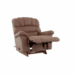 Big on comfort, big on style. The Hillman Rocker Recliner from La-Z-Boy will be a family favorite thanks to its deep cushions, extra-tall back, and generous proportions that invite you to kick back and relax. The Hillman features a number of enhancements that make it perfect for taller users, including a tall base, elongated handle, deep chaise seat, higher-density foam, and an extra-long footrest. Simply use the convenient handle on the outside arm to raise the footrest for reading, relaxing, or watching TV. When you’re not reclining, it’s a relaxing rocker recliner with a smooth, calming motion. Stocked in Mink Brown and Ink Grey to match any home décor.