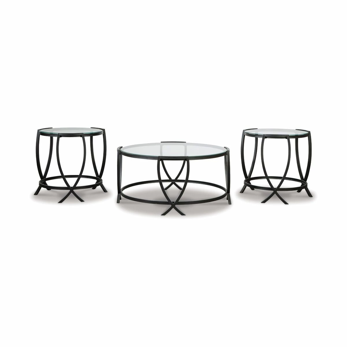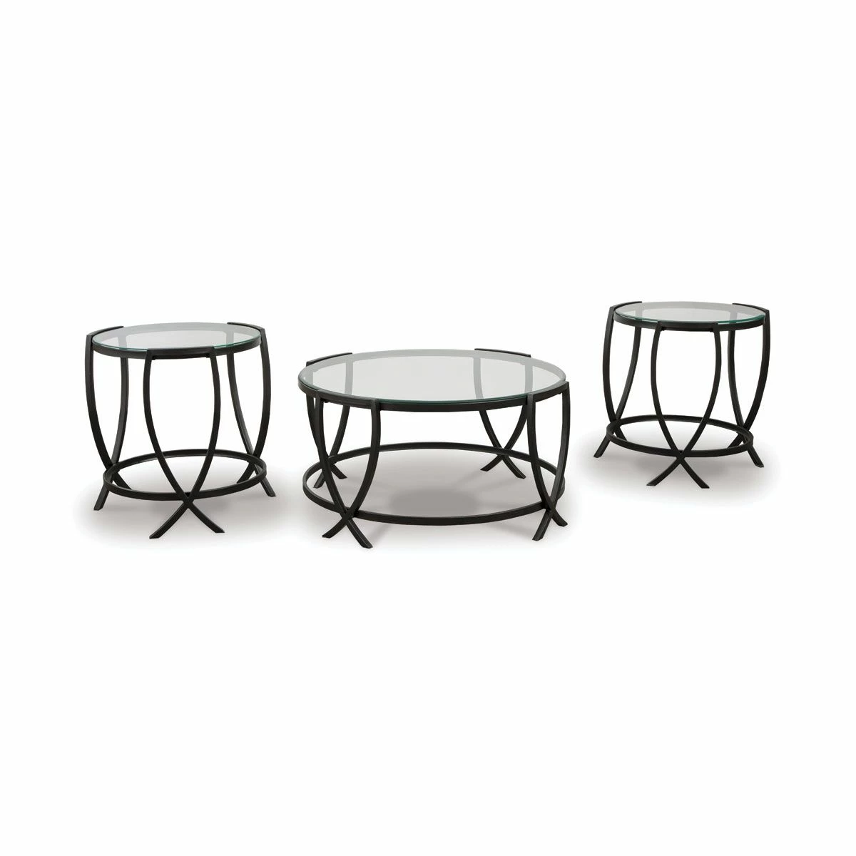 What a clear winner for lovers of contemporary style. Making a brilliant impression with its metal arc X-motif, the Kate coffee table set is sure to round out your space with fashionable flair.