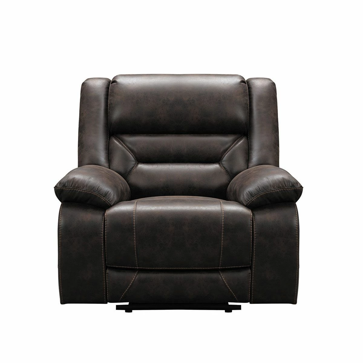 Your new family gathering spot, the Larkin reclining living room is built on the idea that your living room can be stylish, comfortable and durable all at the same time. Featuring dacron-wrapped, high-density solid-block foam cushions, this living room suite features a patterned microfiber fabric in a Dark Walnut Brown. The accent stitching and over-stuffed pillow top arm add perfect details to this group. Pieces available in this collection: Reclining Sofa, Console Reclining Loveseat and Recliner. Made in the U.SA.!!!