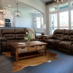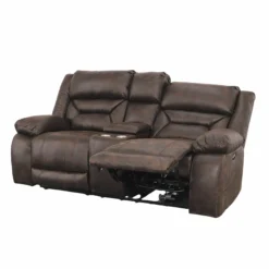 Your new family gathering spot, the Larkin reclining living room is built on the idea that your living room can be stylish, comfortable and durable all at the same time. Featuring dacron-wrapped, high-density solid-block foam cushions, this living room suite features a patterned microfiber fabric in a Dark Walnut Brown. The accent stitching and over-stuffed pillow top arm add perfect details to this group. Pieces available in this collection: Reclining Sofa, Console Reclining Loveseat and Recliner. Made in the U.SA.!!!
