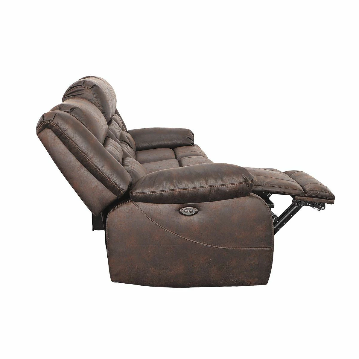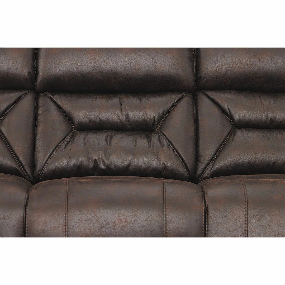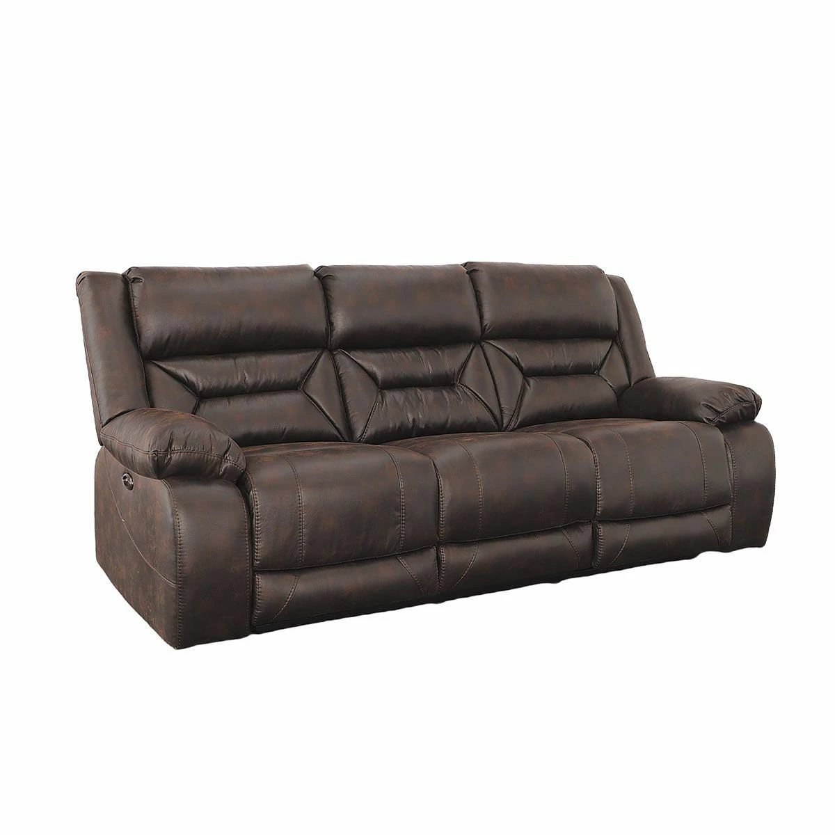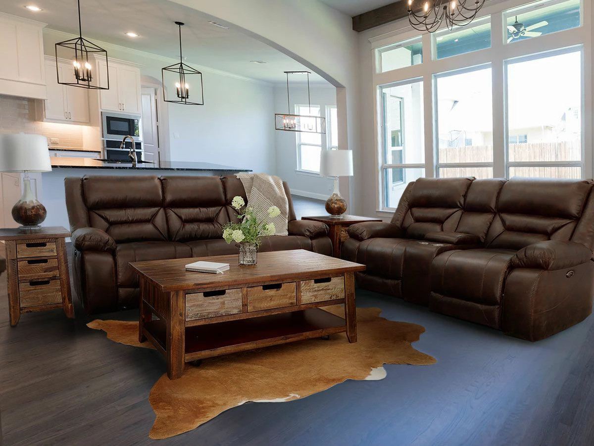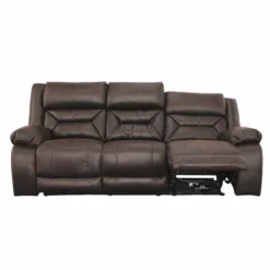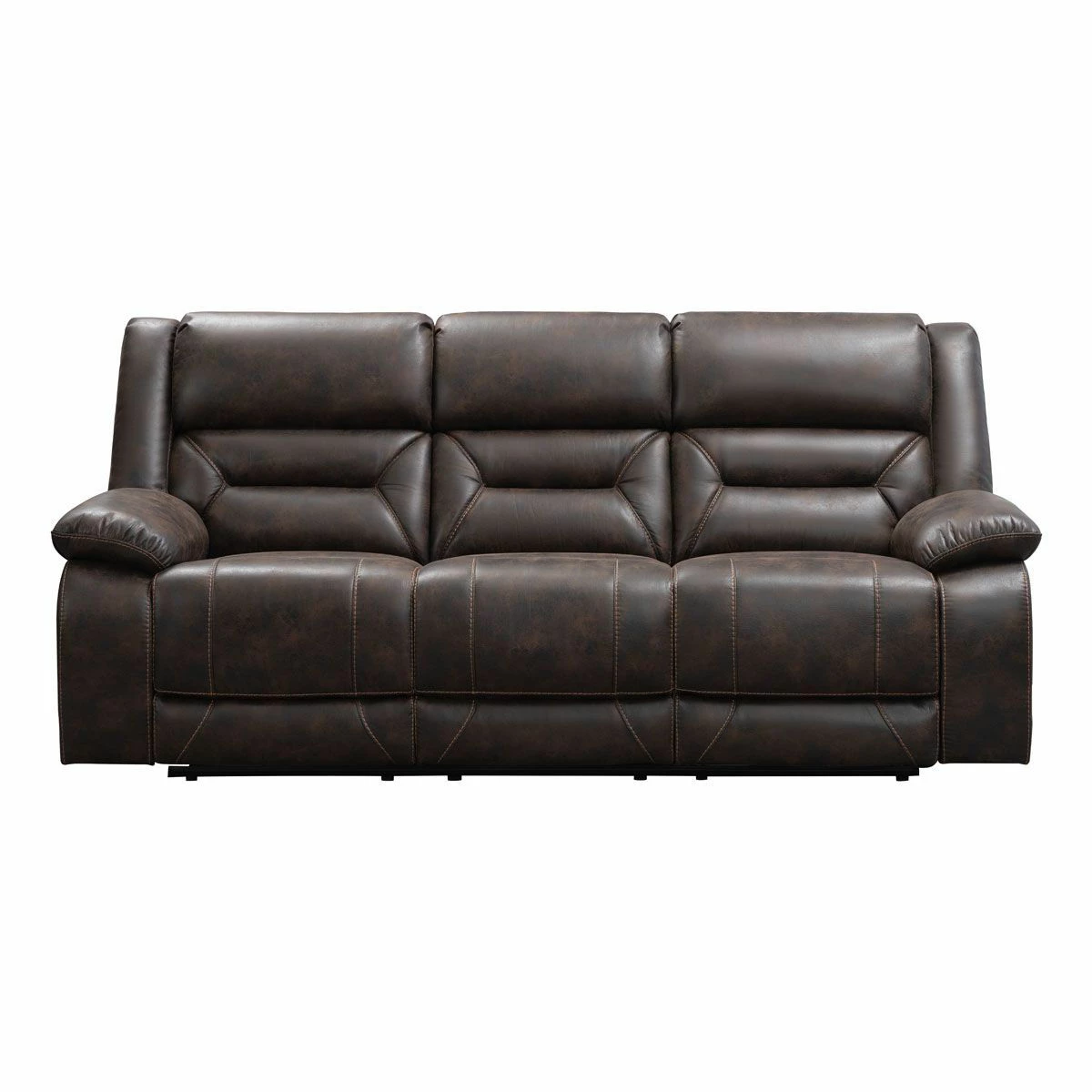 Your new family gathering spot, the Larkin reclining living room is built on the idea that your living room can be stylish, comfortable and durable all at the same time. Featuring dacron-wrapped, high-density solid-block foam cushions, this living room suite features a patterned microfiber fabric in a Dark Walnut Brown. The accent stitching and over-stuffed pillow top arm add perfect details to this group. Pieces available in this collection: Reclining Sofa, Console Reclining Loveseat and Recliner. Made in the U.SA.!!!