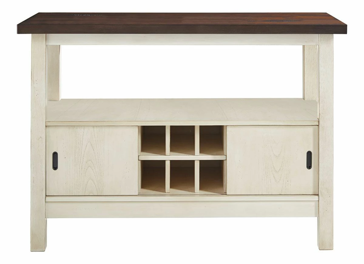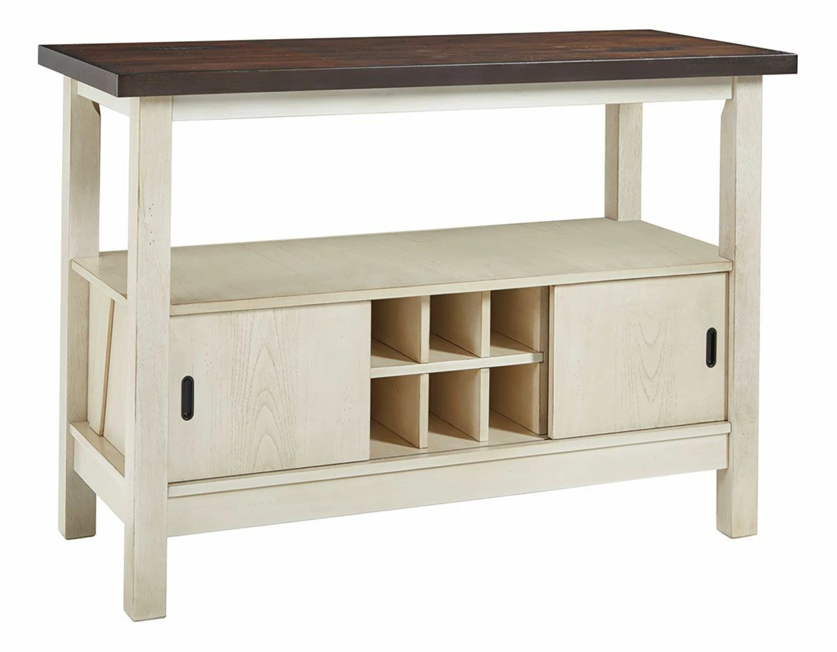 Treat yourself with some rustic storage space. This server is made of solid wood and features a wine rack and glass holder, making it an excellent addition to any dining room.