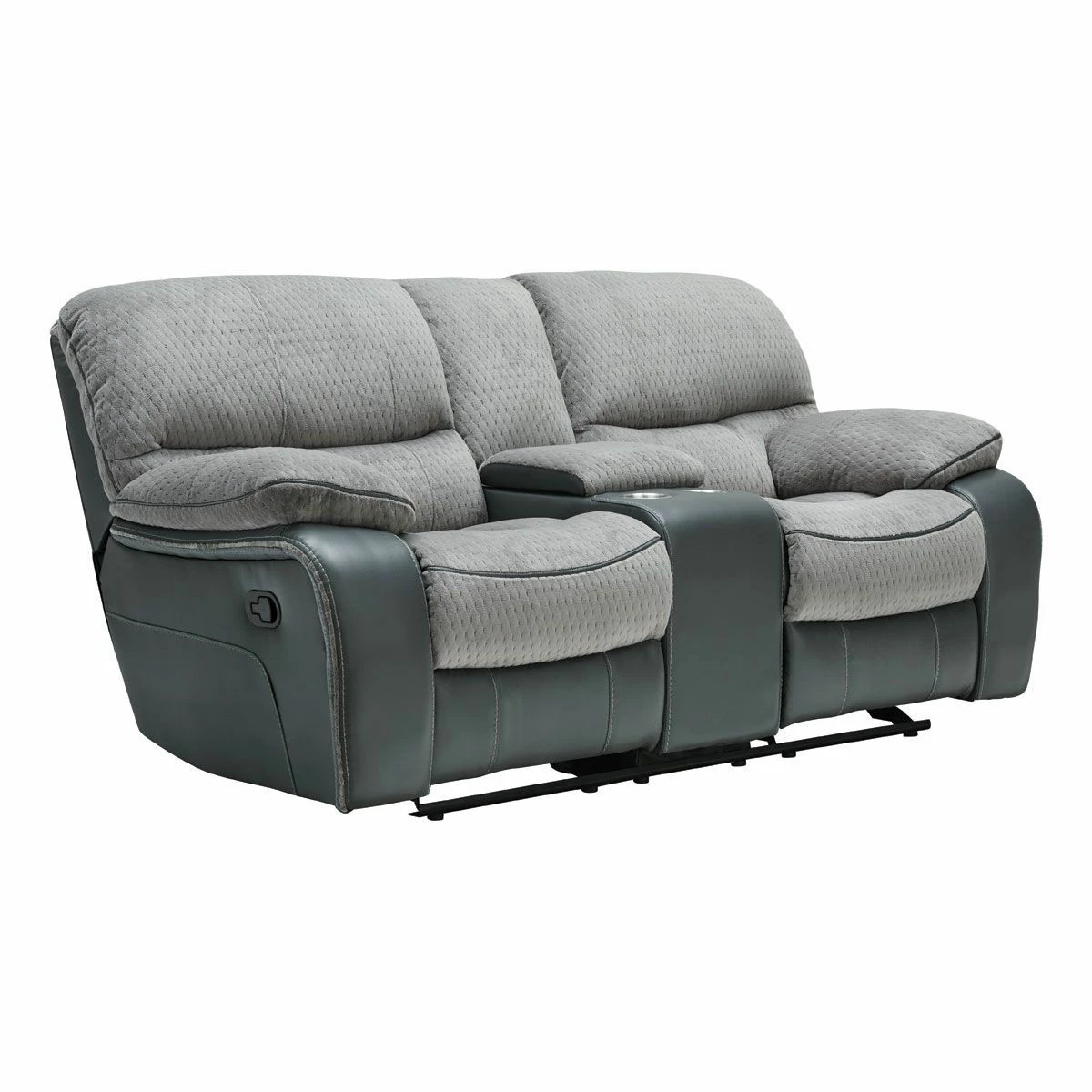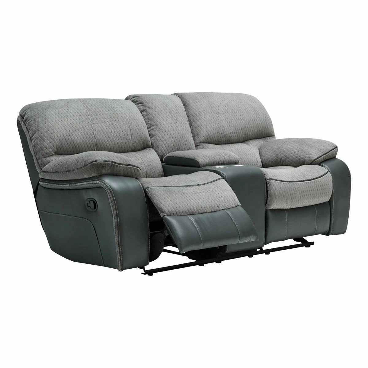 Relax in comfort with the body contoured cushioning of the ‘Lawson’ Reclining Living Room. Enjoy the great look of leather with the easy care of Microfiber. Pub seat backs with contoured bucket seats and lower lumbar support designed with your body shape in mind. A fresh color palette features a two-tone design with a light heather grey fabric accented with a deep charcoal blended fabric exterior. Contrast welting adds an eye-catching detail.