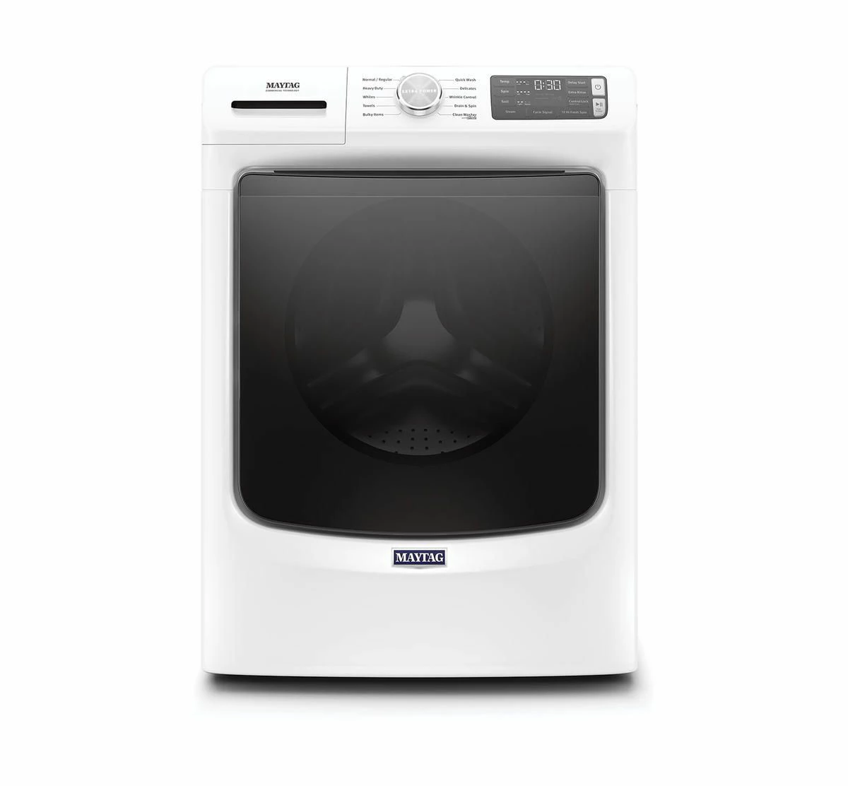 This Maytag 4.5 Cu. Ft. capacity electric front load washer features Maytag’s power wash technology for outstanding cleaning power. Also includes the fresh hold specialty wash option which will periodically tumble and circulate fresh air through a finished load of laundry for up to 12 hours after wash cycle keeping them fresh. The steam option powers out stains using additional soak time. Optimal water temperature and boost of steam.