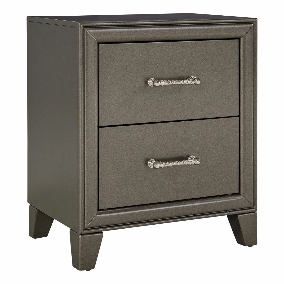 The Monaco master bedroom collection blends contemporary detailing with glam styling. Finished in a unique charcoal grey wood tone, the finish is set-off with the dazzling crystal hardware. The upholstered tufted headboard softens the look of this suite while providing comfort. Bling up your bedroom with the Monaco.
