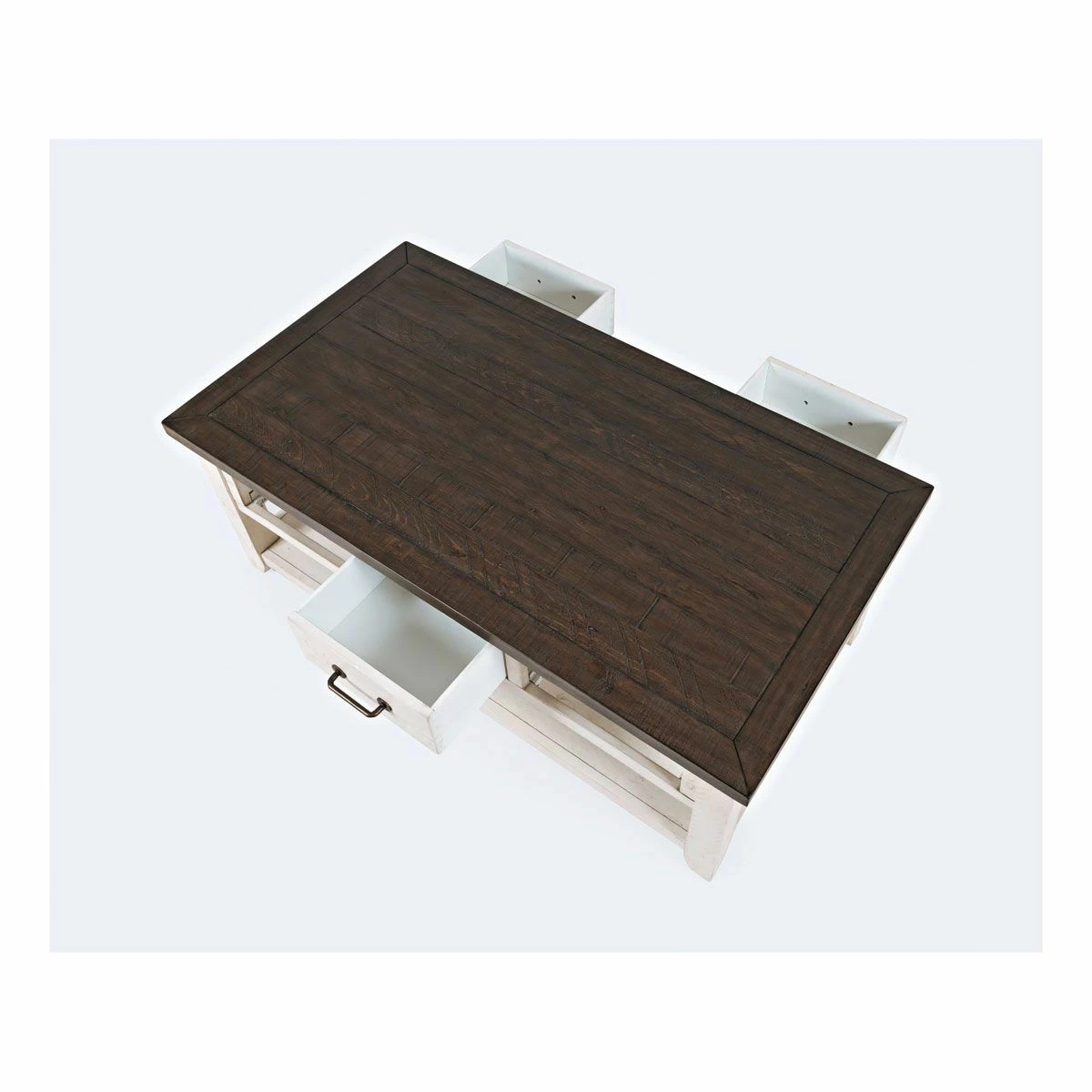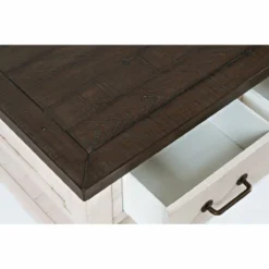 This two-toned castered coffee table consisted of reclaimed pine blending rustic and natural style. Lots of storage with the 3 drawers.