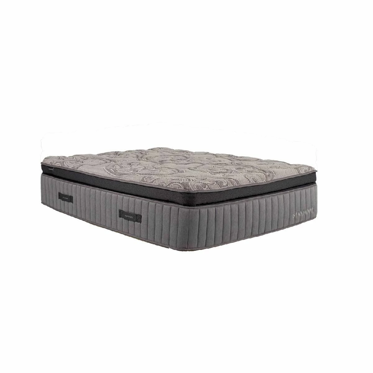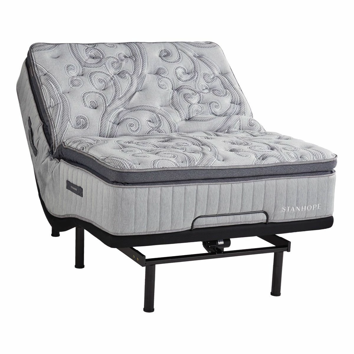 The Stanhope Frederick is state of the art design and technology. A quilted luxury pocketed spring mattress, the Frederick delivers deep conforming comfort and elimination of surface transfer. As a hybrid mattress, the thoughtful layering of high-density foam support layers affords maximum support and conformability. This group includes Queen mattress and Queen Legends Signature® by Badcock® Adjustable base.