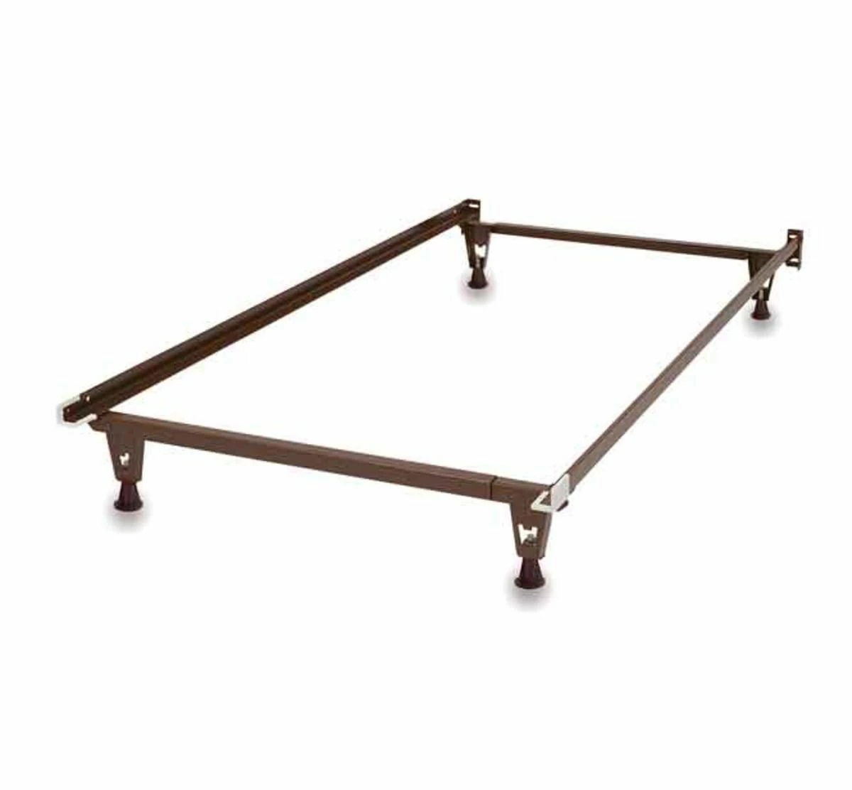 This bed frame adjusts from twin to full size and is made of high carbon steel. Heavy duty formed steel legs with bushings and glides and riveted construction with keyslot assembly complete this frame. For 75″ bedding only.