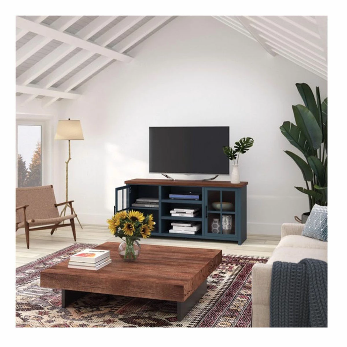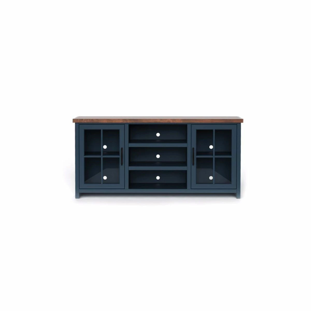 Your 66″ TV Console is dressed in an alluring, two-toned Blue Denim finish with Whiskey top, to create a refreshing, new look to any room. Holds up to an 75″ TV with plenty of room to store your media gear, while showing off your personal touch. The oil rubbed hardware and glass panel doors makes Nantucket a noticeable statement. Sit back, relax and love your transformed home.