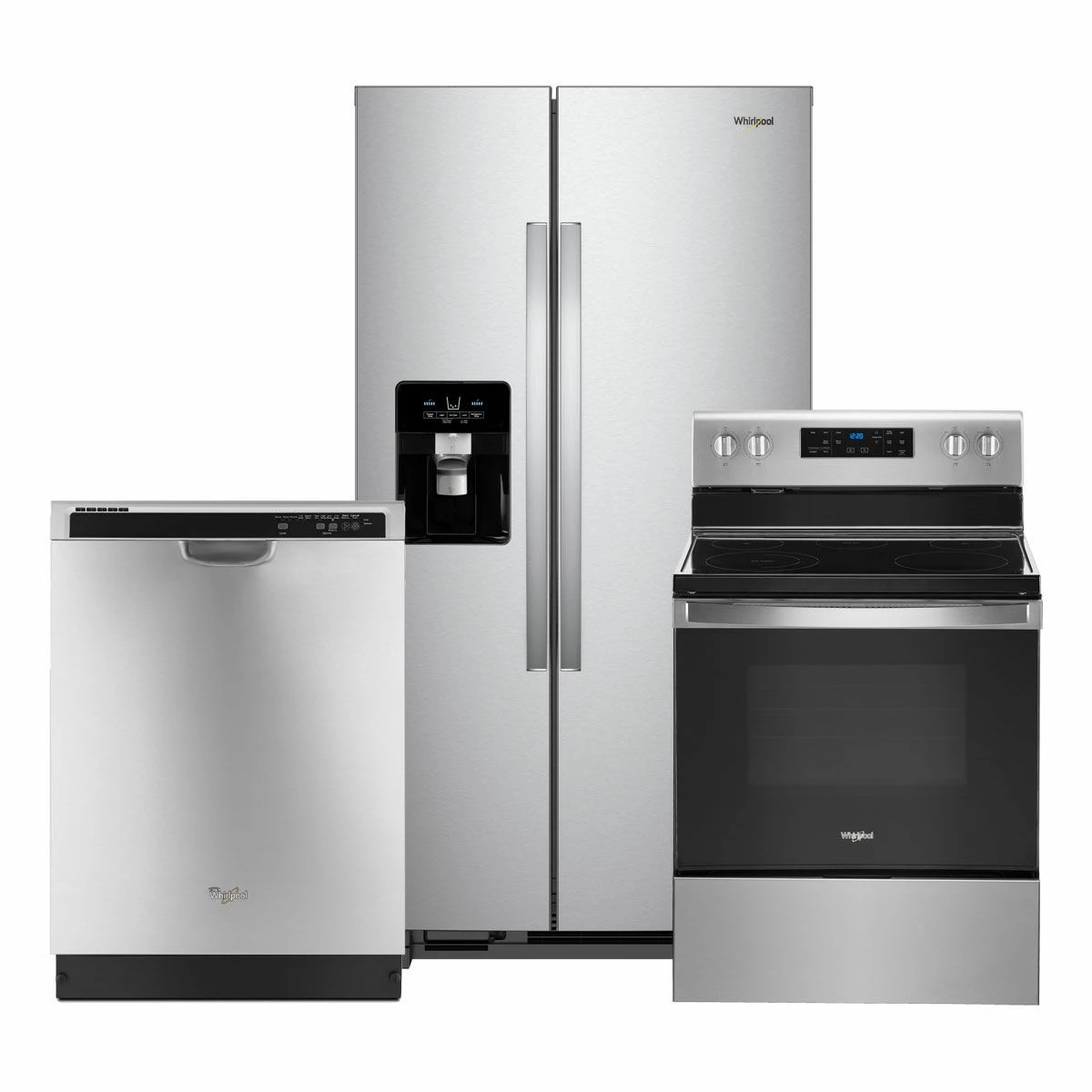 This 3 PC stainless appliance package includes an electric smooth top range with a 4.8 cu.ft. oven, a 25.4 cu.ft. side-by side refrigerator with spill saver shelves, and a tall tub undercounter dishwasher.