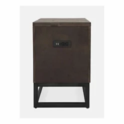 Willow Oak Chairside Table features 2 USB, 2 AC outlets, a shelf and drawer for storage. 16″W x 24″D x 24″H. The collection also offers a lift top cocktail table, end table, sofa table, and complete media wall unit, available separately.