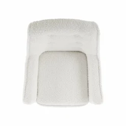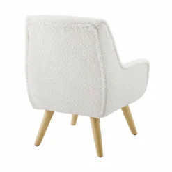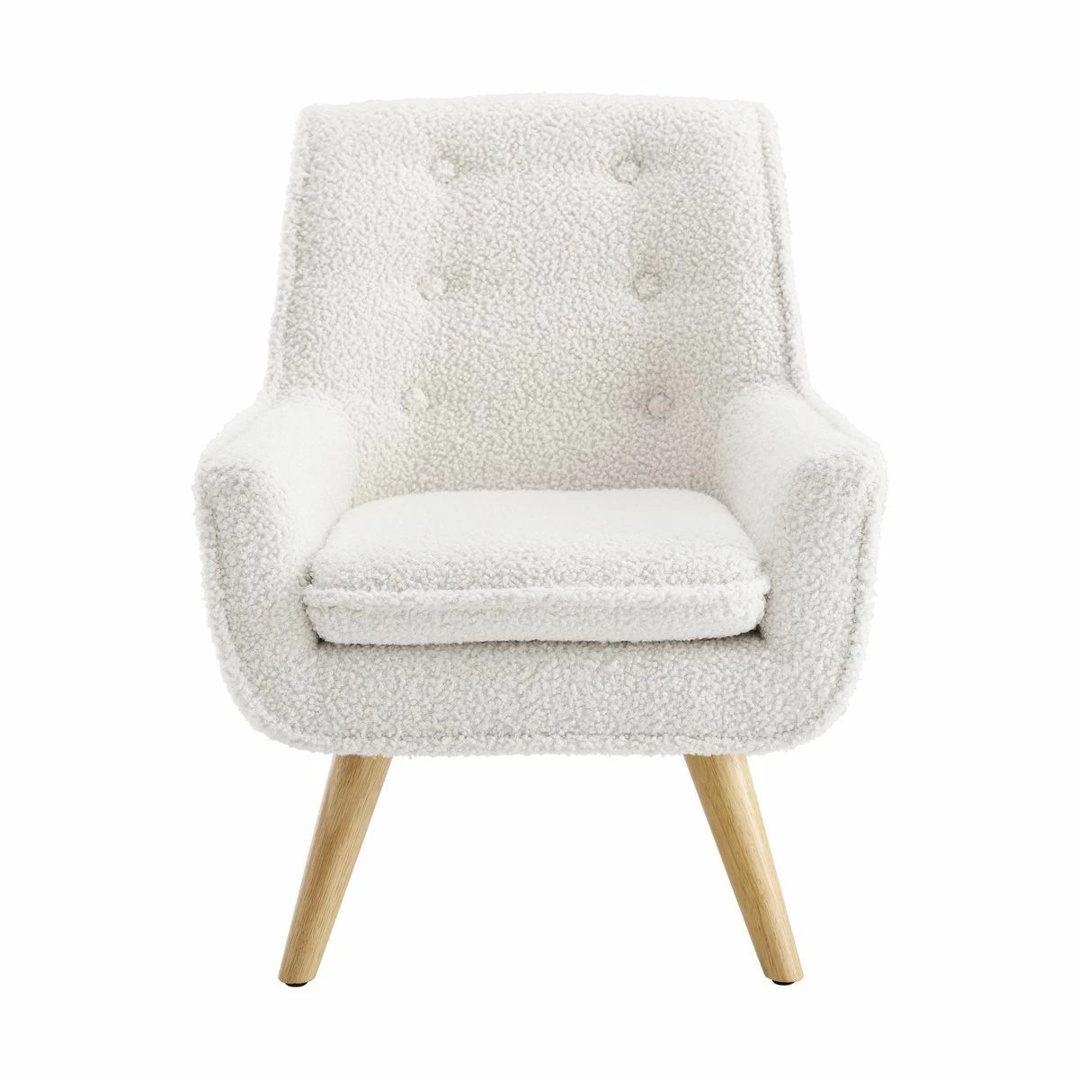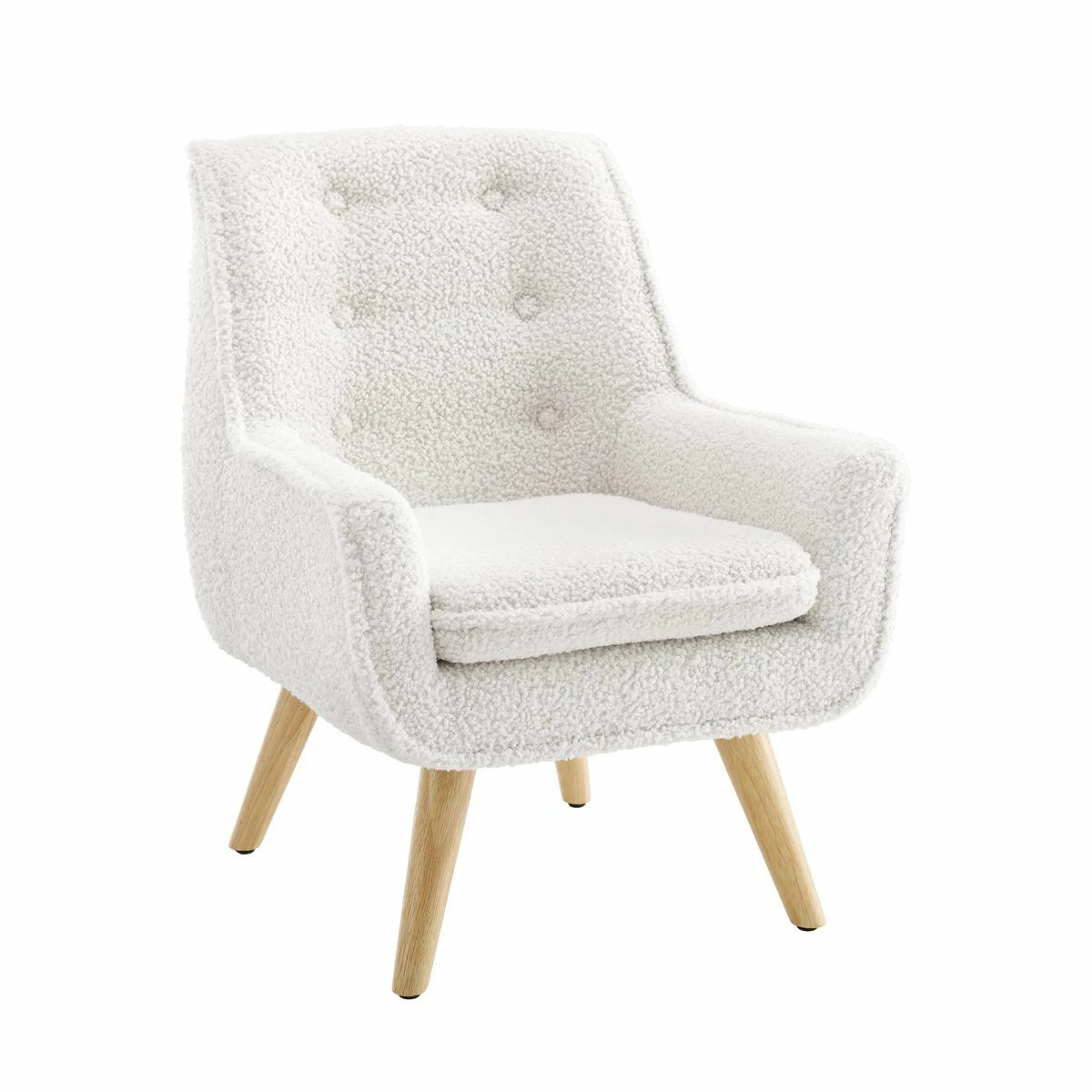 With its Sherpa upholstery, button tufting, and retro silhouette, this child-sized chair features mid-century modern style elements for a timeless look. Crisp white upholstery and natural wood legs brighten any space while also complementing any color scheme. Add this chair to a bedroom, open concept living space, or playroom to create a stylish yet appealing reading nook.